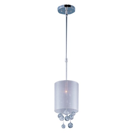 ET2 E22382-120PC Veil Crystal Beads & Silver Sheer Fabric Drum Mini Pendant Ceiling Lighting, 1-Light Xenon 50 Watt, 13"H x 7"W, Polished Chrome
