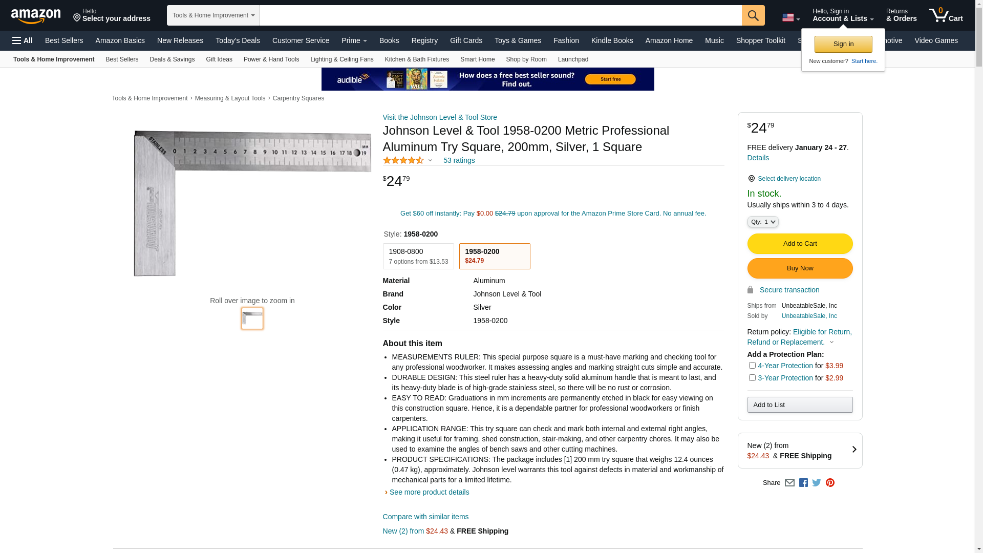 Johnson Level & Tool 1958-0200 Metric Professional Aluminum Try Square, 200mm, Silver, 1 Square