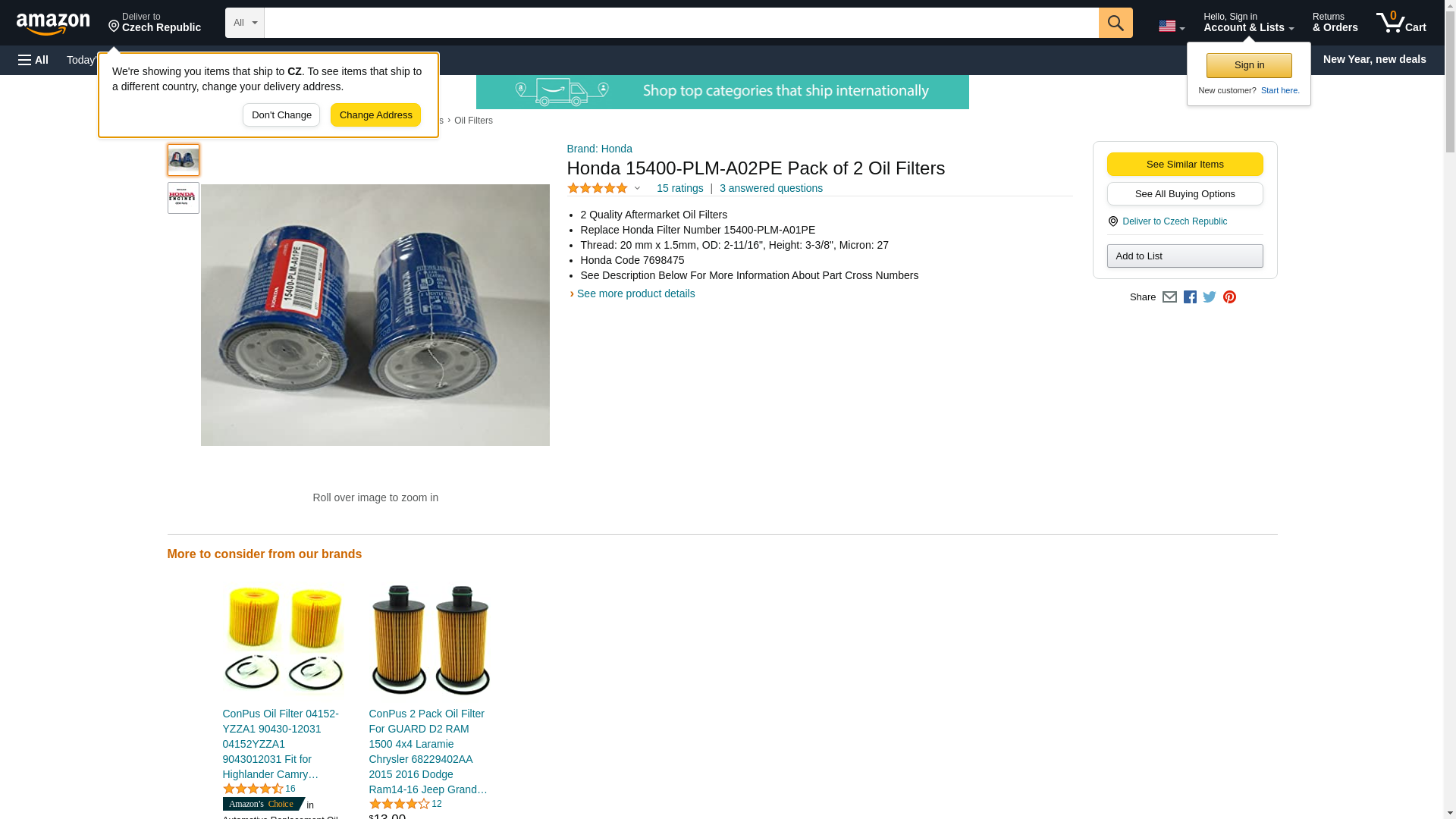 Honda 15400-PLM-A02PE Pack of 2 Oil Filters