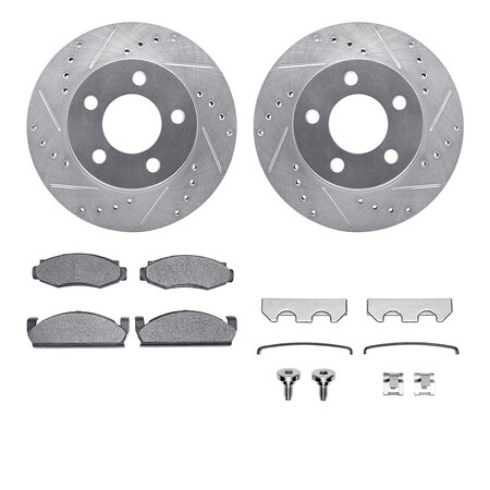 Dynamic Friction Company Front Brake Rotors-Drilled and Slotted-Silver with Ultimate Duty Performance Brake Pads includes Hardware 7412-42017