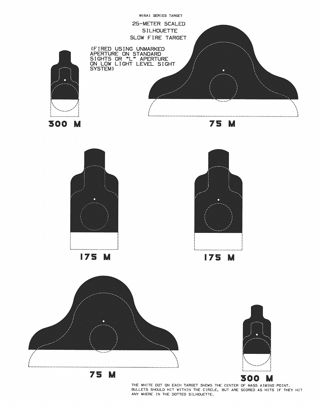ACTION TARGET, Government and Agency, Black/White, US Dept. of Defense Slow Fire 2-Side Target - 48FT22|M16A1-25MSFTT-50 - Grainger
