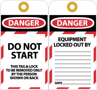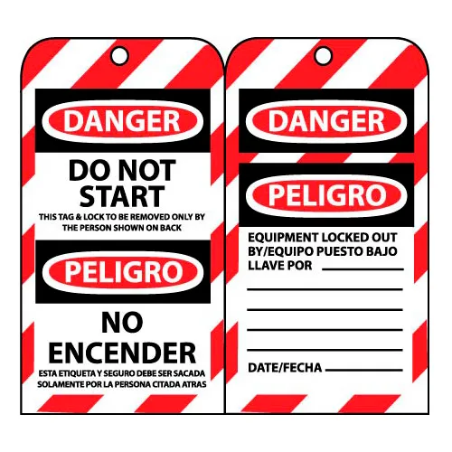 TAGS, LOCKOUT, DANGER DO NOT START. . .(BILINGUAL), 6X3, UNRIP VINYL, GROMMET (20 Pack)