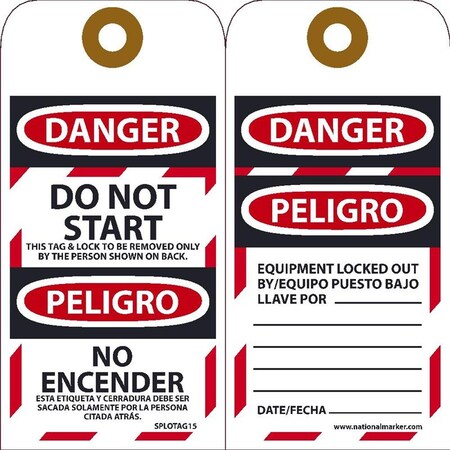 National Marker SPLOTAG15 Danger Do Not Start This Bilingual Tag