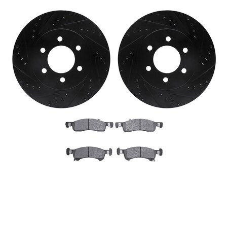 Dynamic Friction Company Front Brake Rotors Drilled and Slotted Black with Heavy Duty Brake Pads - 8202-99176