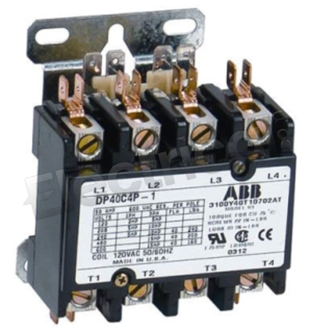 ABB, DP40C2P-1, 2 Pole, 40 Amps, 120VAC Coil, Definite Purpose Contactor