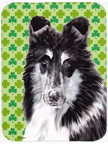Carolines Treasures SC9726LCB Black And White Collie Lucky Shamrock St. Patricks Day Glass Cutting Board - Large