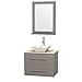 Wyndham Collection Centra 30 inch Single Bathroom Vanity in Grey Oak, Ivory Marble Countertop, Pyra White Porcelain Sink, and 24 inch Mirror