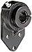 - Narrow cast iron flange bracket housing with three bolt holes on one side for mounting in tight spaces