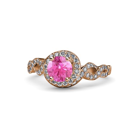 This vintage Ring showcases 0.95 ct Pink Sapphire embraced by corkscrew of 0.55 ct tw Diamonds forming a cyclone which continue to form a double crossover pave shank with undergallery design making it an enduring statement of love. The birthstone of April Diamond represent Love & Faithfulness. Pink Sapphire,the birthstone for September brings us Peace & Joy. This Fine Jewelry Product is Custom Made in USA & Ships with a Jewelry Box & Inhouse Appraisal Certifying Authenticity. (JP=83699)