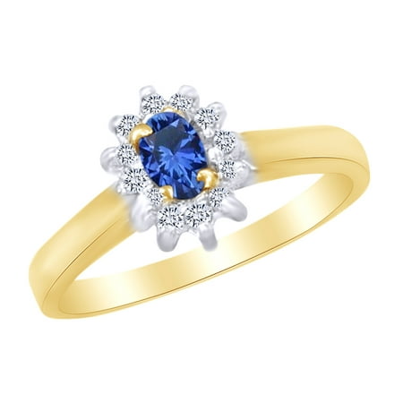 <ul> <li>Expertly Crafted In 14k Yellow Gold GUARANTEED, Authenticated with a 14k stamp</li> <li>0.43 Ct Simulated Sapphire Having Clarity Of VVS1-VVS2 & White Diamond Having Clarity Of I2-I3</li> <li>Stone Setting Type : Prongs</li> <li>Stone Shape : Oval Shape</li> <li>Stone Creation Method : Simulated</li> </ul>