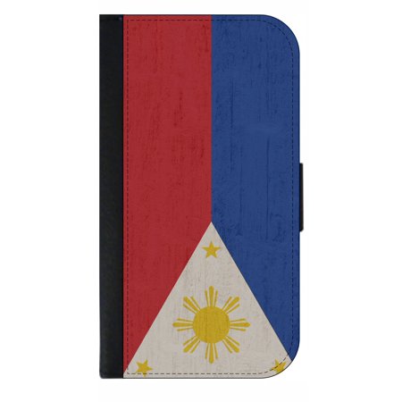 Philippines Grunge Flag Brick Wall Print Design - Wallet Style Cell Phone Case with 2 Card Slots and a Flip Cover Compatible with the Standard Apple iPhone X - iPhone 10 Universal