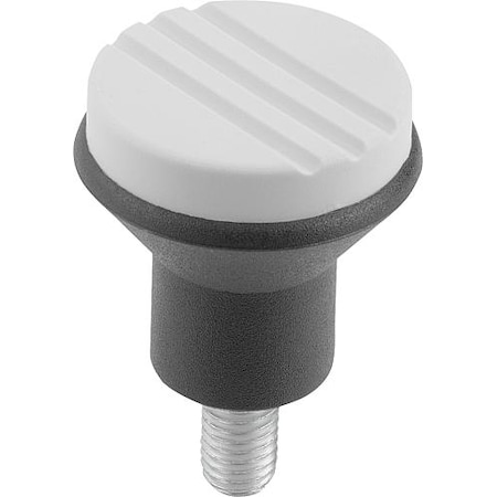 Kipp 06242-0AE5X20 Thermoplastic Novo·Grip Grey Mushroom Knobs with 8-32" External Thread, Stainless Steel Bolt Bushing, Inch, Size 1, 21 mm Diameter, 41 mm Height, Light Grey Color (Pack of 10)