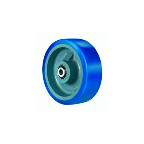 - Blue polyurethane with cast iron center for quiet operation and resistance to impacts and wear without marking floors