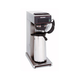 BUNN CWTF35 Automatic Airpot Coffee Brewer with Hot Water FaucetThis BUNN coffee brewer has a hot water faucet for those who prefer tea. It's designed to keep coffee hot for hours.Brews 3.8 to 7.5 gallons of coffee per hour Brews into 1.9 to 3 liter airpots Keeps coffee hot and fresh for hours Digital timer Hot water faucet International electrical configurations available 120/208-240V, 15 amps, 3500 watts, 60 Hz Cord attached Height: 23-5/8" Width: 9" Depth: 18-1/2" Shipping Weight: 33 lbs Airpots sold separately Model: CWTF35-APS Product No.: 23001.0008 370547