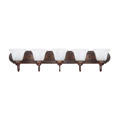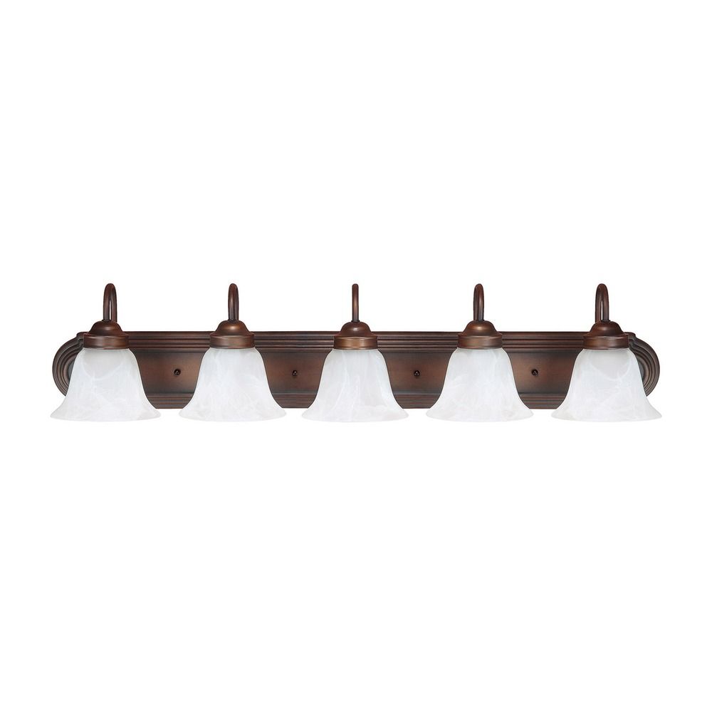 Capital Lighting 1035BB-118 Arthur White Faux Alabaster Glass Bath Vanity Wall Mount, 5-Light 500 Total Watts, 8" H x 36" W, Burnished Bronze