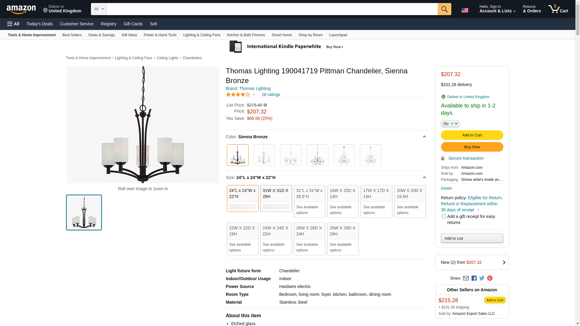 Thomas Lighting 190040719 Pittman Chandelier, Sienna Bronze