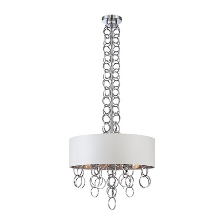 Eurofase 25613-018 Novello Cotton Shade with Metallic Lining Ring Drum Pendant Light, 4-Light 160 Total Watts, 20"H x 24"Dia, Chrome