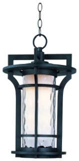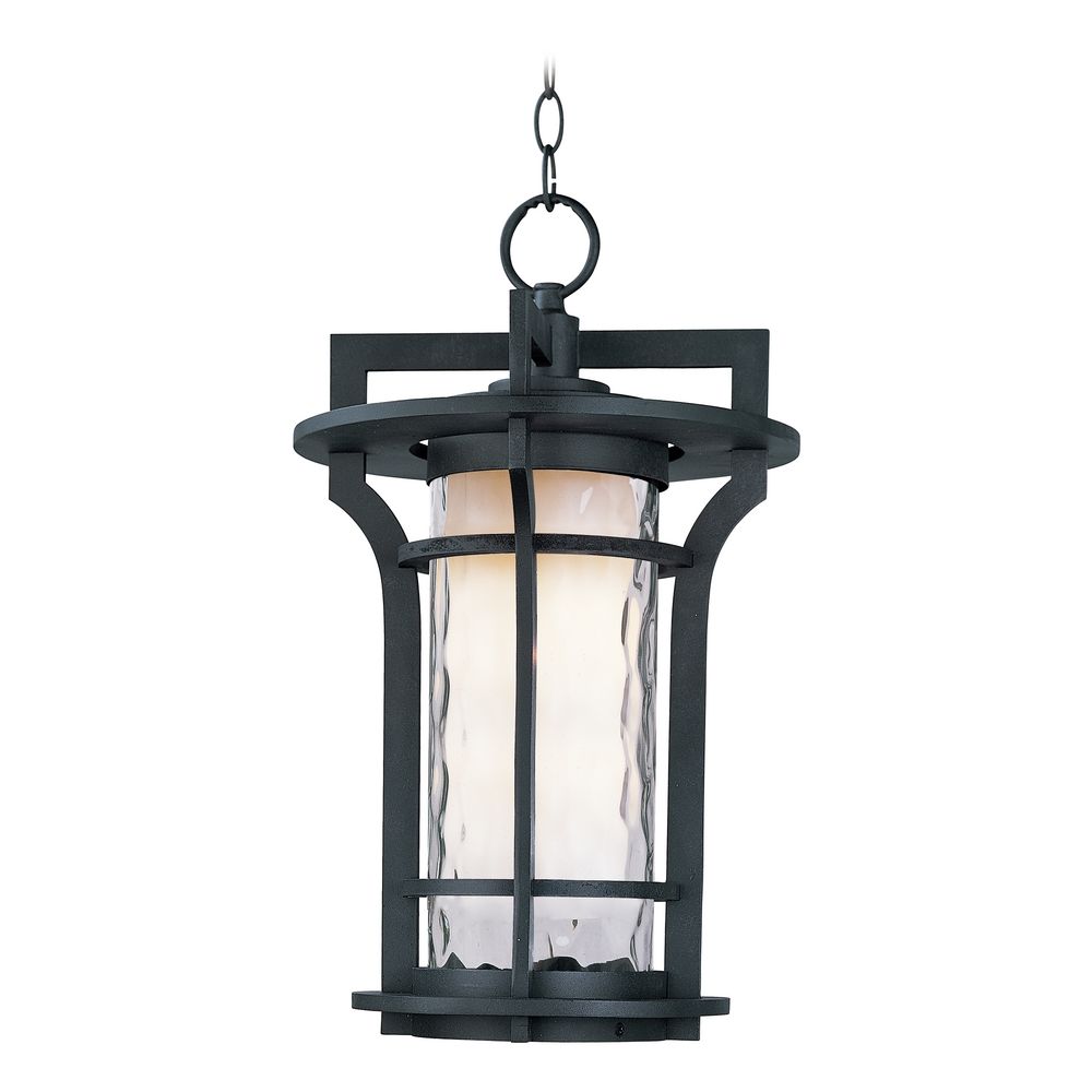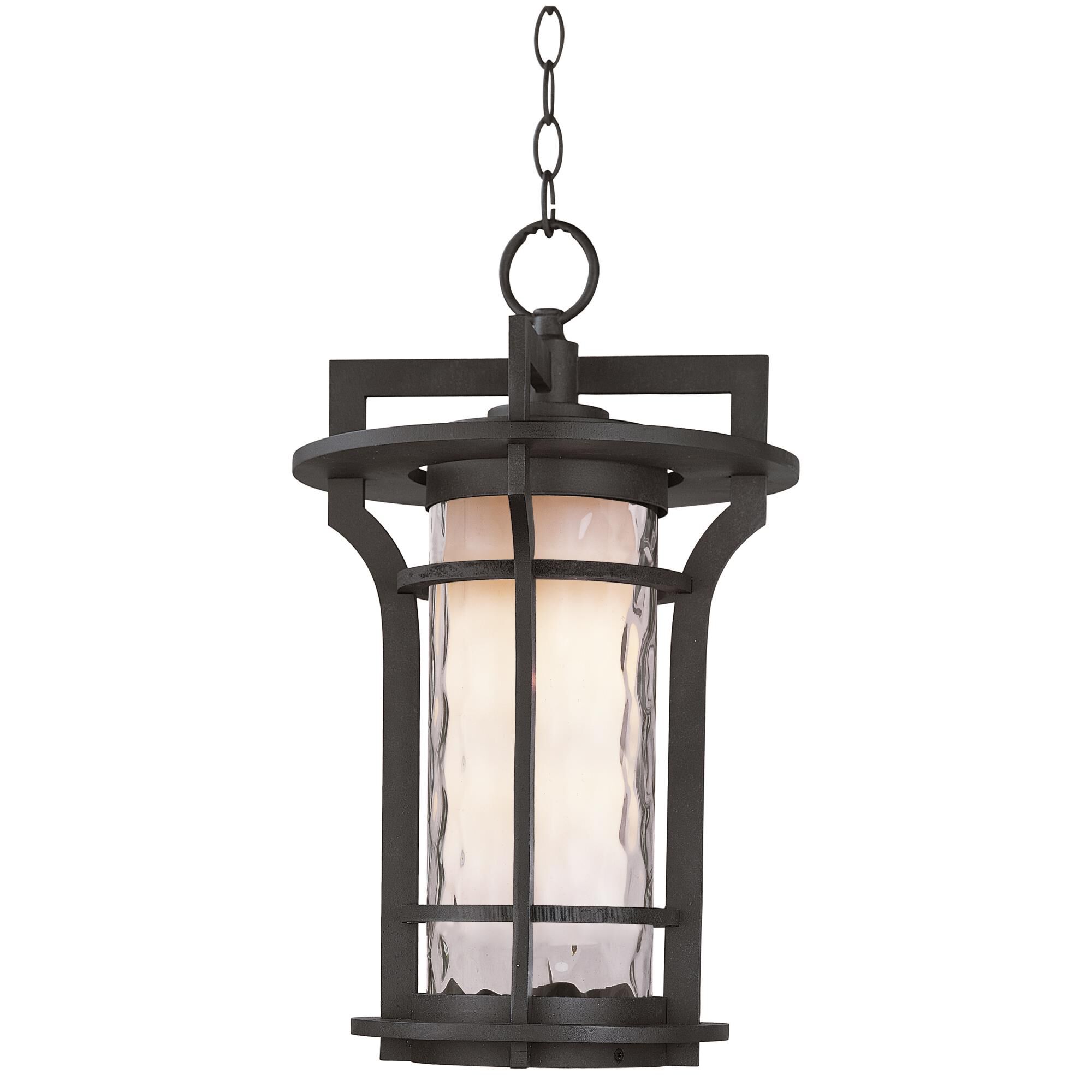 Maxim 30488WGBO Oakville Clear Water/Satin White Glass Cylinder Outdoor Pendant Hanging Lantern, 1-Light 60 Watt, 19" H x 12" W, Black Oxide