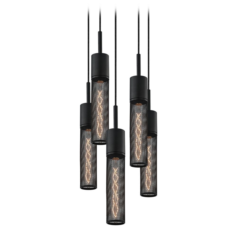 Sonneman 4941.97-5, Gotham Large Cylinder Pendant, 5 Light, Textured Black