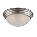 This versatile, affordable Savoy House 2-light flush mount fixture is great for use in a variety of spaces. It features a white etched glass dome for a soft glow and a sleek satin nickel finish.
