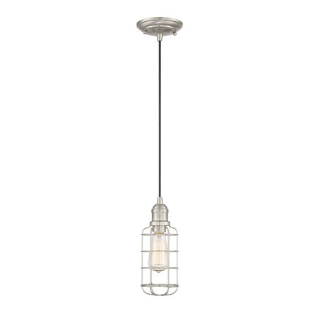 These sleek Savoy House mini pendants are vintage inspired with metal shades and cages. <br><br> Family: Casual Lifestyles <br> Finish: Satin nickel <br> Bulb wattage: 100 <br> Shade: Wire cage <br> Number of bulbs: 1 <br> Type of bulb: E <br> Bulbs included: No <br> Safety rating: UL, CUL <br> Voltage: 120