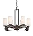 Rustic old world charm meets modern styling on this gorgeous chandelier. A flemish bronze finish adds warmth and richness to the clean, angular, modern lines. Six faux candles made from white opal glass give off a soft romantic glow.