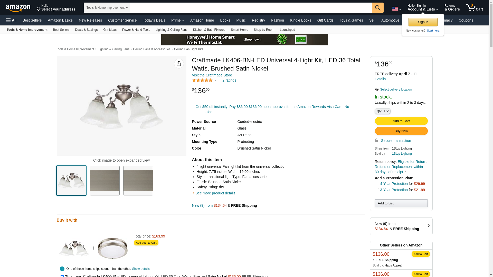 | brecherslighting.com | LK406-BN-LED | 1 | 63 | 1 | 1 @ $81.60 |