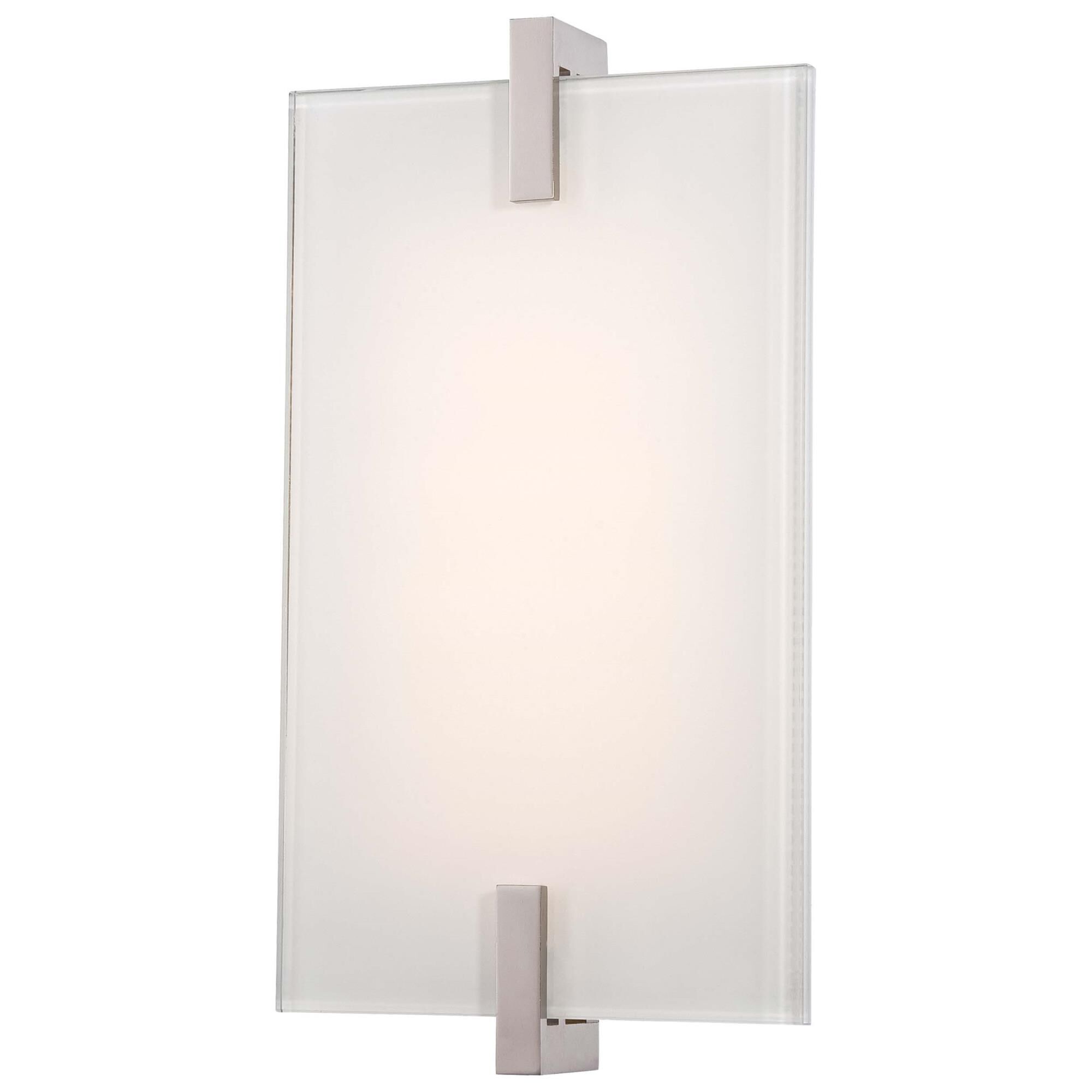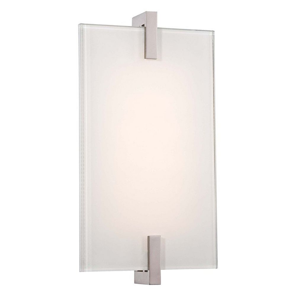 By George Kovacs.The Hooked P1110 LED Wall Sconce combines clean lines and polished nickel hardware with energy-efficient LED lamping and a clear glass diffuser with a white inside. The diffuser, held in place by four polished nickel hooks, provides a soft and even glow. Ideal for modern hallways, living rooms and bedrooms.Dimmable to 5% with electronic low voltage (ELV) dimmer.