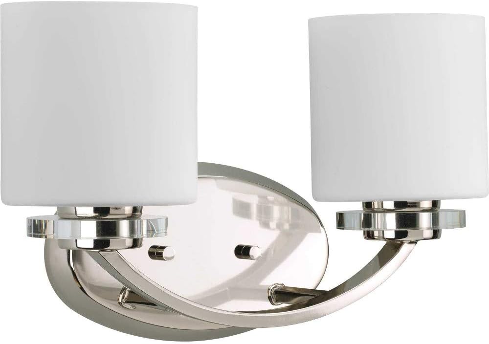 Low price available on the Progress Lighting Thomasville Nisse 2 Light Bath Vanity in Polished Nickel P2013-104 with the pros at PlumbersStock - affordable kitchen and bathroom.