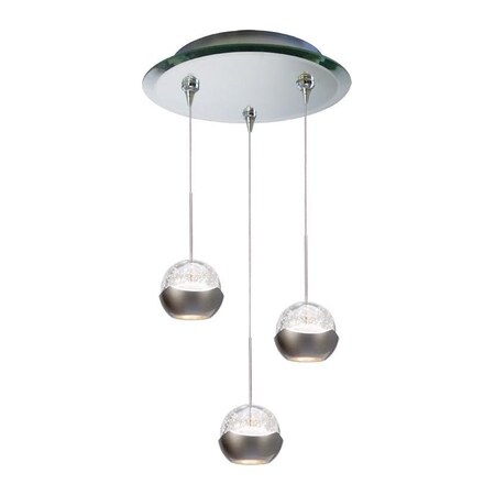 WAC Lighting QMP-LED311/3-MR Genesis LED 3 Light Pendant Fixture with Mirror Canopy, Clear