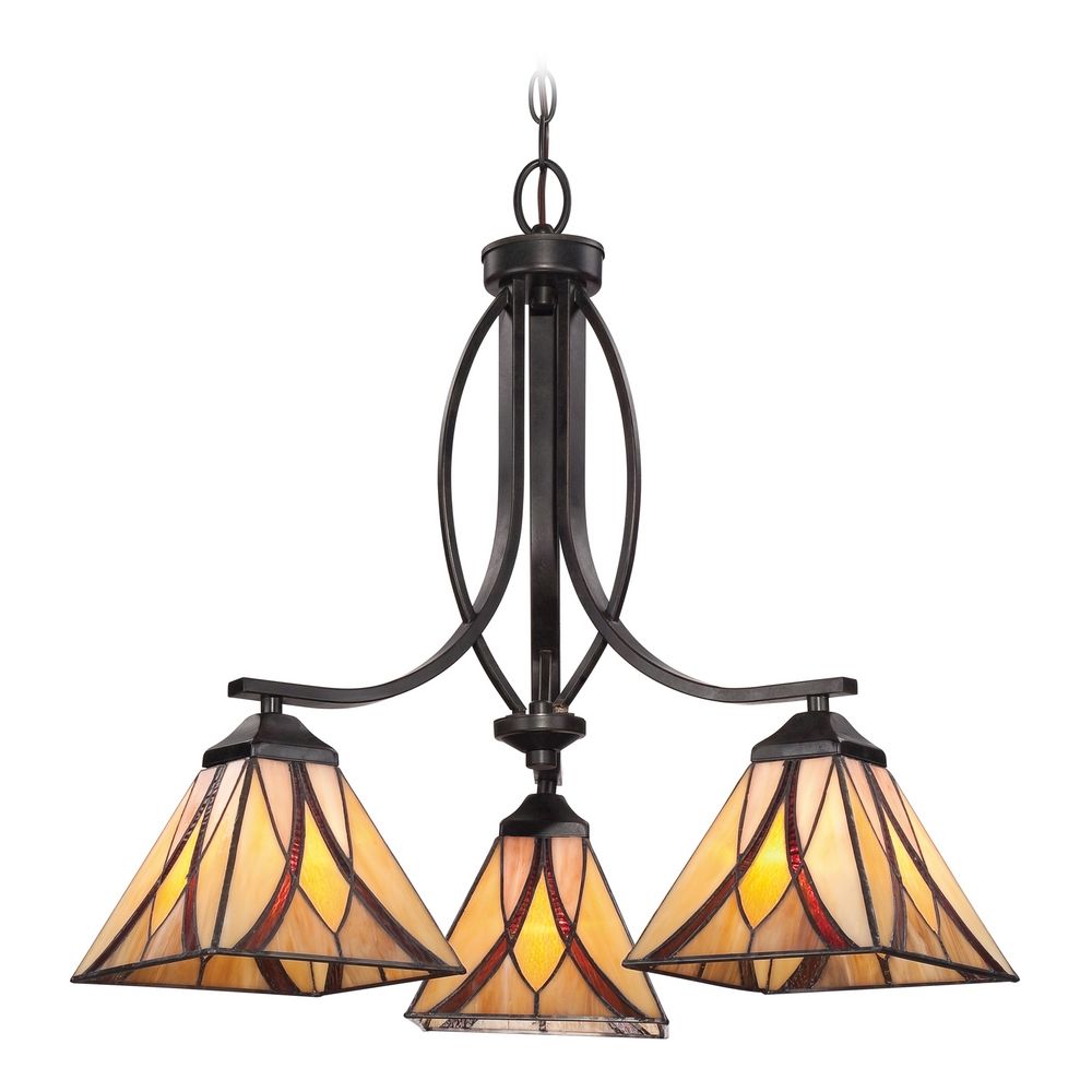 Quoizel TFAS5003VA Asheville Multicolor Stained Glass/Tiffany Downlight Chandelier, 3-Light 300 Total Watts, 22" H x 23" W, Valiant Bronze