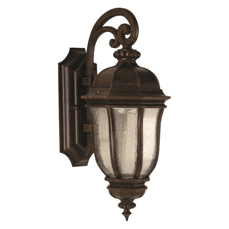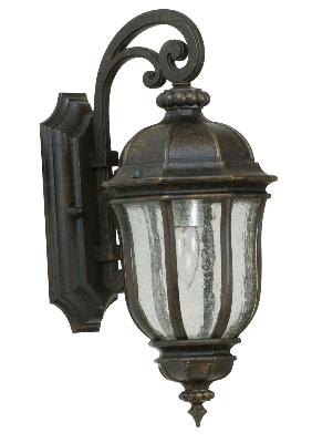 - DETAILS: Constructed of Cast Aluminum with Peruvian Bronze Finish and Clear Seeded Shade