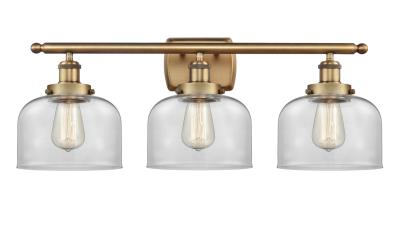 INNOVATIONS LIGHTING 916-3W-BB-G72 BALLSTON LARGE BELL 3 LIGHT 26 INCH CLEAR GLASS VANITY LIGHT, BRUSHED BRASS,...