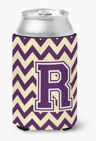 Carolines Treasures CJ1058-RCC Letter R Chevron Purple & Gold Can or Bottle Hugger, 0.25 x 4 x 5.5 in.