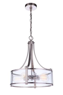 Craftmade 55395-BNK Elliot Cylinder Clear Glass Drum Pendant Light Fixture, 5-Light 300 Total Watts, 20" H x 16" W, Brushed Polished Nickel