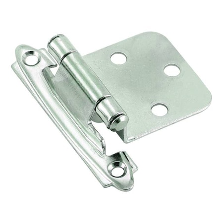 Set of 10. Amerock Hinge. Self-Closing. Face Mount. Overlay Variable. Chrome. Lifetime Finish. 2-3/4 in. L x 2 in. W x 1/8 in. H (0.24 lbs).