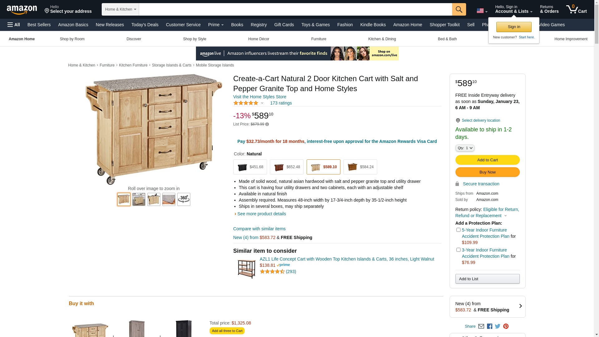 Create-a-Cart Natural 2 Door Kitchen Cart with Salt and Pepper Granite Top and Home Styles