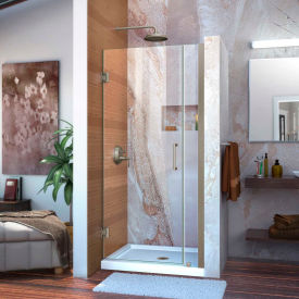 DreamLine UNIDOOR is the only door you will ever need to complete an unforgettable design of your shower project. UNIDOORs universal options allow it to fit opening from 24 inch up to 61 inch, and the door may also be reversed for either left-wall or right-wall installation. The 3/8 inch heavy glass and the frameless design supported by solid brass self-closing hinges delivers the look of an expensive custom glass door at the fraction of the high custom price. All doors over 30 inch wide include a stationary glass side panel with a full length adjustable aluminum wall profile. The smart design of the adjustable wall profile, allows for an on-site adjustment for either out-of-plumb or general door rough opening of up to 1 inch. ; Brushed Nickel ; DL35-SHDR-20357210-04-BN