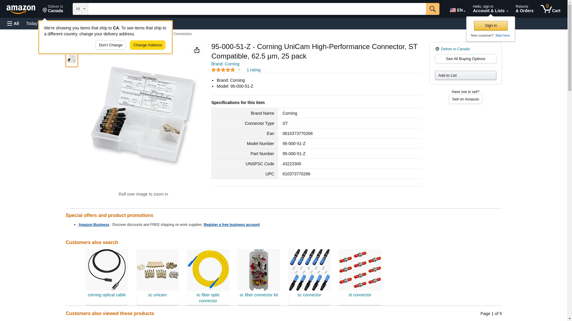 <UL> <LI>Organizer Pack of 25 Connectors <LI>Network connector <LI>ST Multimode (M) <LI><b>Pretium Performance</b> Fiber Connector </UL> <p> The UniCam connector is the ideal solution for all your field-installable multimode and single-mode fiber optic connector requirements. The quick installation reduces the total installed cost of connectorization, making the UniCam connector cost-effective for all fiber applications, from the main cross-connect to the workstation. The UniCam connector can best be described as a mini pigtail. It incorporates a factory-installed fiber stub that is fully bonded in the ferrule. The other end is precisely cleaved and placed into the patented alignment mechanism of Corning's mechanical splice. Both the field fiber and fiber stub are fully protected from environmental factors. Unlike other no-epoxy, field-installable connectors, the UniCam connector requires no polishing.