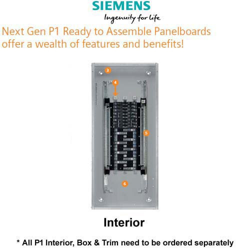Siemens P1A30ML400CT - P1 Interior - 120/240V - 30 Circuits - Main Lugs - 400A - 1 Phase - 3 Wire - Copper Bus | Siemens P1 Ready to Assemble Panelboard