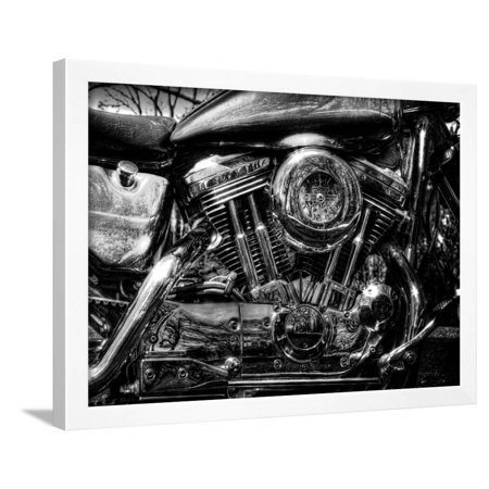 <ul> <li>Title: V-Twin Motorcyle Engine</li> <li>Artist: Stephen Arens</li> <li>Paper Type: Photographic Print</li> <li>Product Type: Framed Art Print</li> <li>Framed in SOHO White</li> <li>Arrives ready-to-hang for fast, simple installation</li> <li>Framed Size: 26x20 in.</li> <li>Handcrafted in the USA</li> </ul>