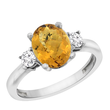 14K White Gold Natural Whisky Quartz Ring Oval 10x8 mm Diamond Accent, sizes 5 - 10