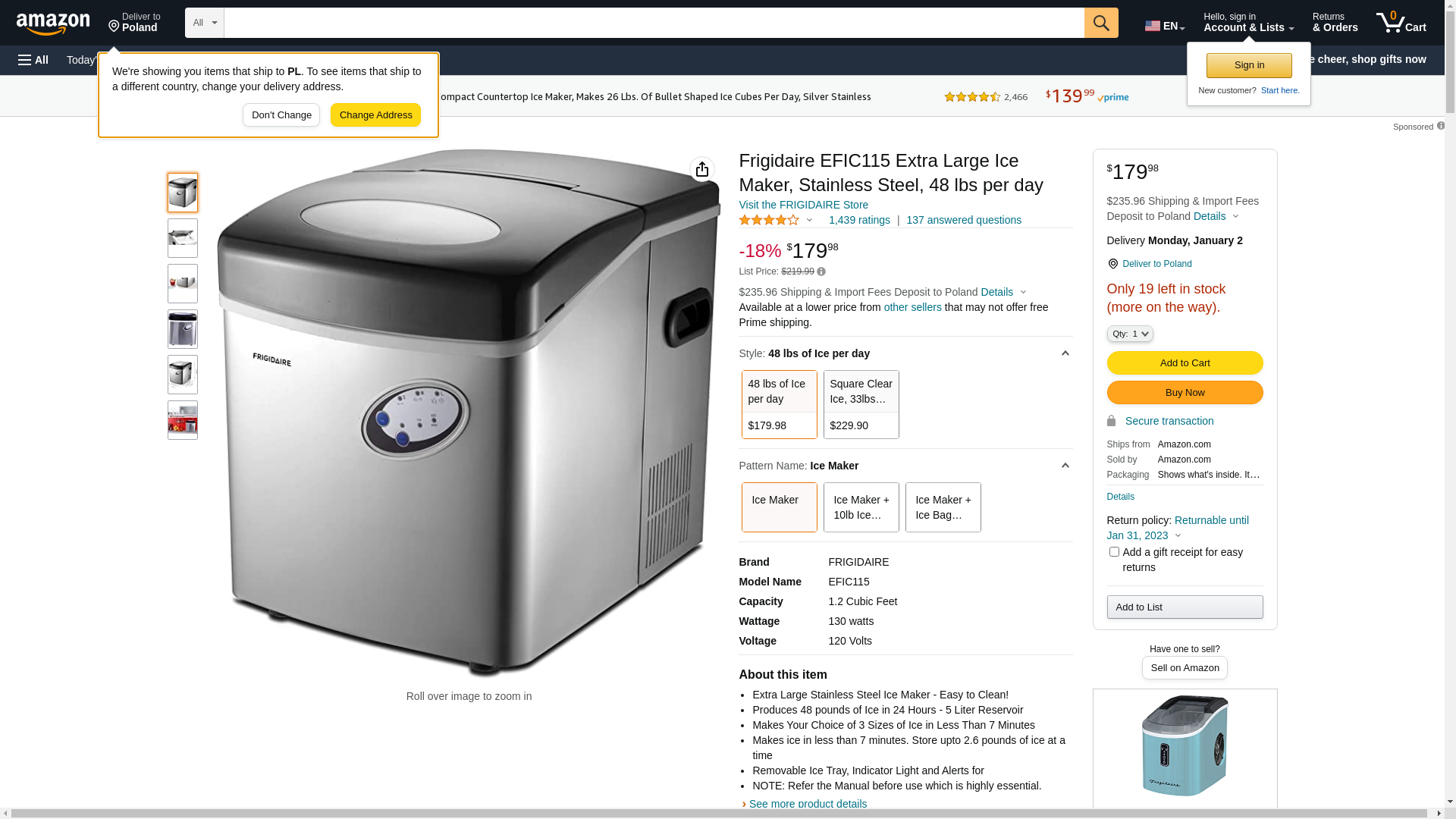 Frigidaire 16.7" 48.5-Lb. Freestanding Icemaker Stainless steel EFIC115-SS - Best Buy