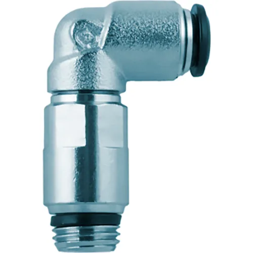 Push to Connect Tube Fitting - Nickel Plated Brass w/ Plastic Release Ring - Male Elbow (Swivel) - 5/32" Tube OD x 1/4" PTF Male