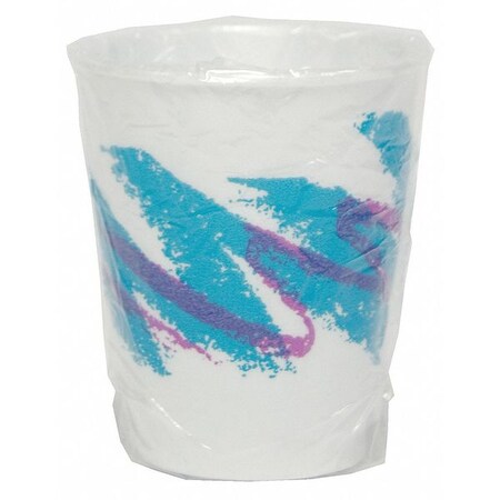 - Disposable 9 oz. insulated foam cup with Jazz print for serving hot and cold beverages