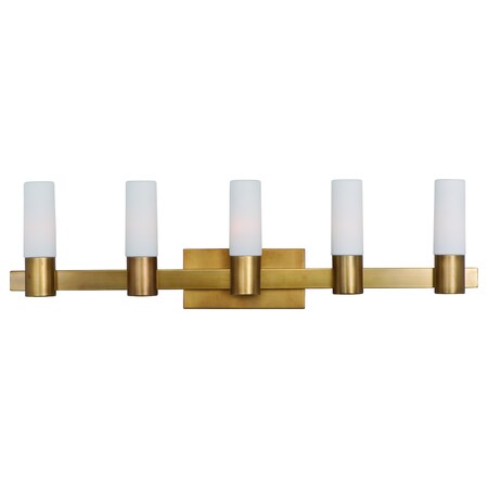 Maxim 22415SWNAB Contessa ADA Compliant Modern Opal Satin White Glass Cylinder Bath Vanity Wall Mount, 5-Light 200 Total Watts, 10" H x 37" W, Natural Aged Brass