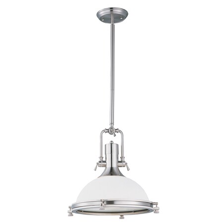 - DETAILS: Constructed of Iron with Satin Nickel Finish and Satin White Glass Shade