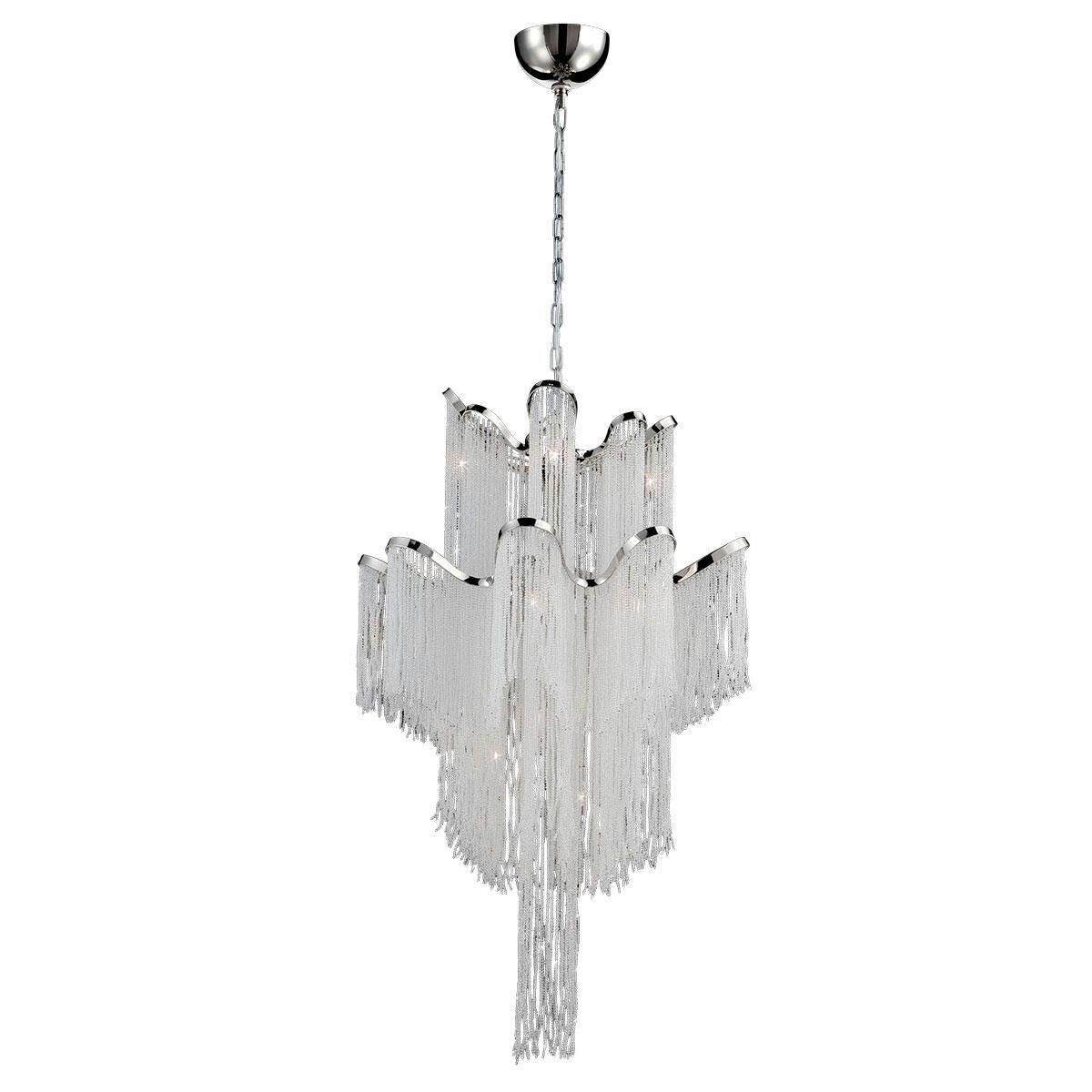Eurofase 26606-019 Ellena Crystal Flowing Beades Round Chandelier, 12-Light 720 Total Watts, 36"H x 24"Dia, Nickel