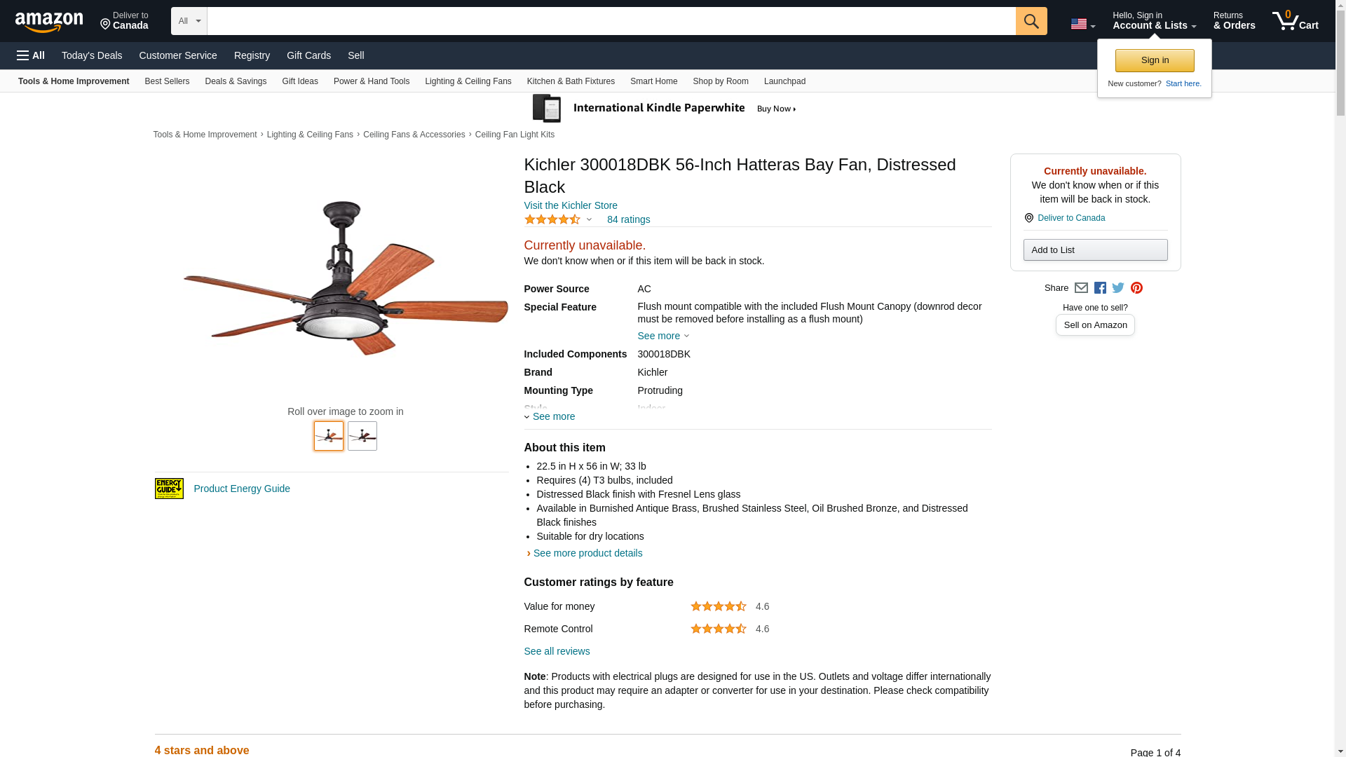 Kichler 300018DBK 56-Inch Hatteras Bay Fan, Distressed Black