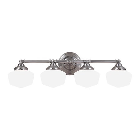 Sea Gull Lighting Academy Brushed Nickel 31.5 in. 4-Light 60W Medium Base Satin White Glass Bath Fixture